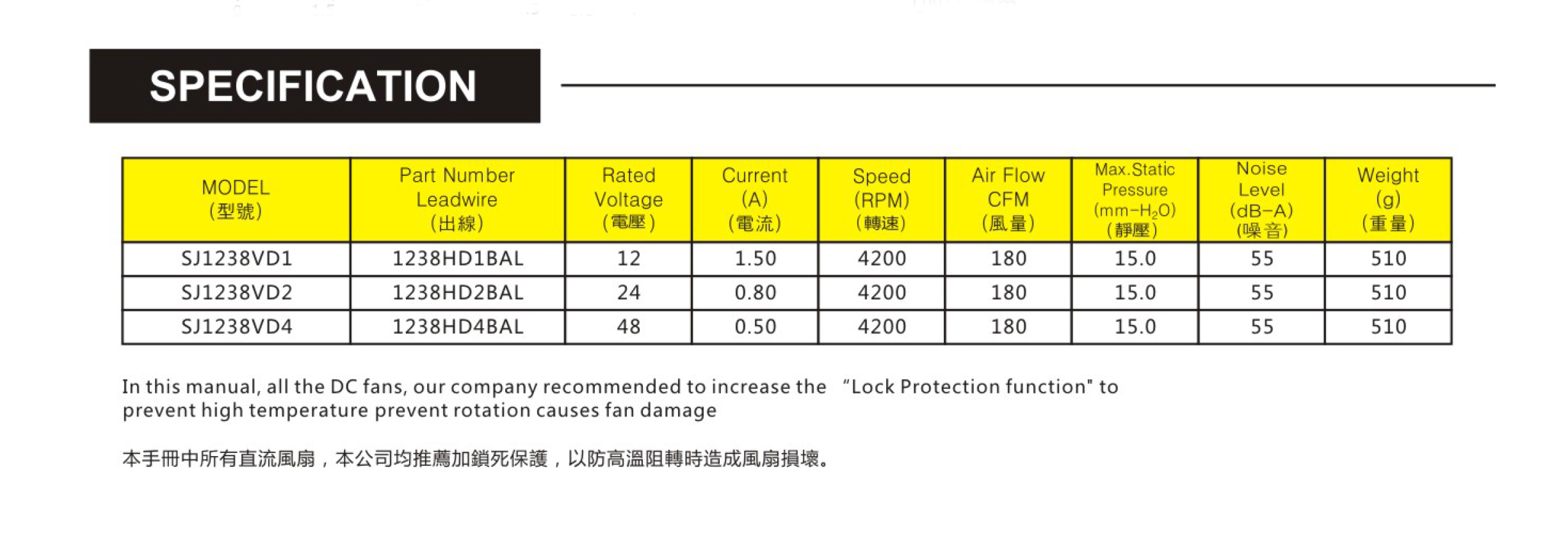 Taiwan's SanJu SJ1238VD2-DC axial fan